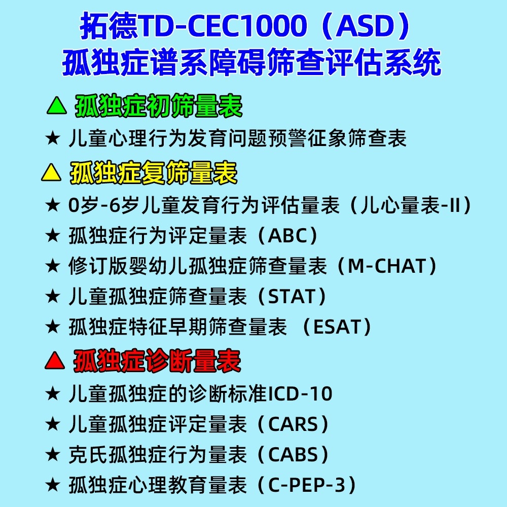 孤獨(dú)癥譜系障礙篩查評(píng)估量表,心理教育量表CPEP3,ASD自閉癥篩查量表